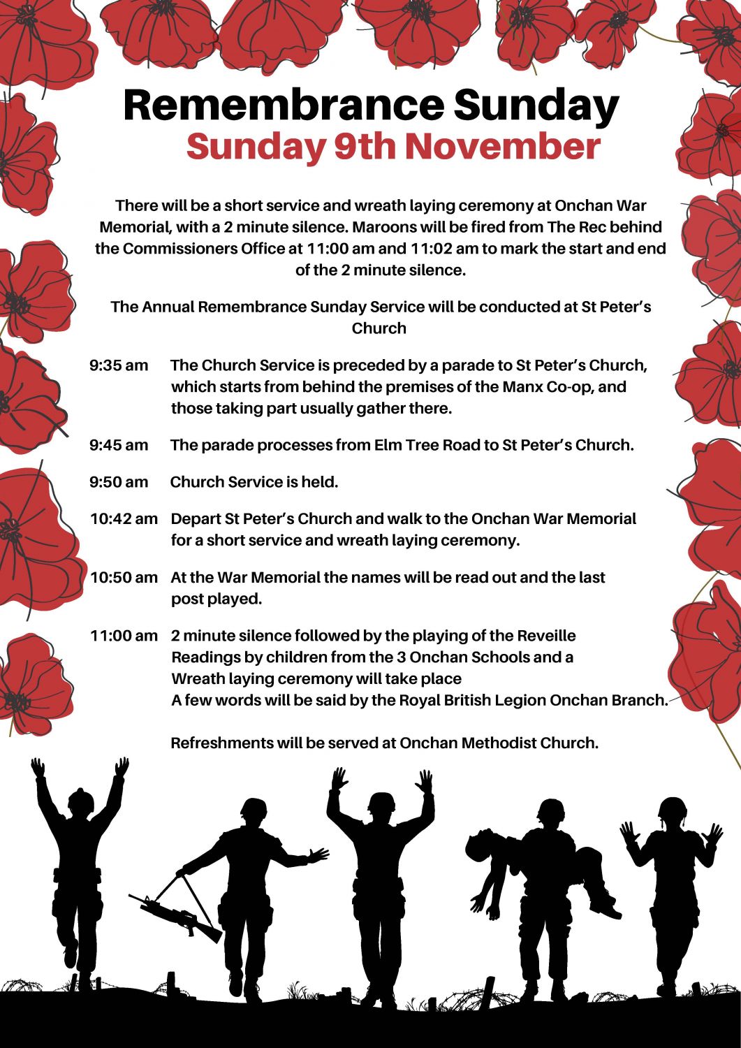 There will be short service starting at 10:45 am at the Onchan War Memorial with a two minute silence. A child from each of the Onchan ......