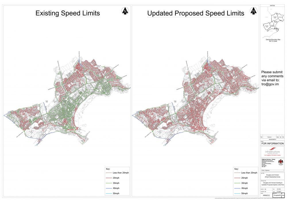 The Department of Infrastructure is consulting on the proposed Speed Limits (Various Roads) (East Area) Traffic Regulation Order 2025 affecting speed limits on various roads in Onchan and Douglas.