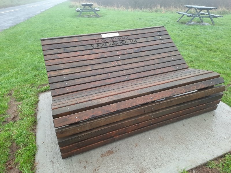 This bench has been privately funded in memory of Haydn Glaister, offering a peaceful location known for its dark skies.